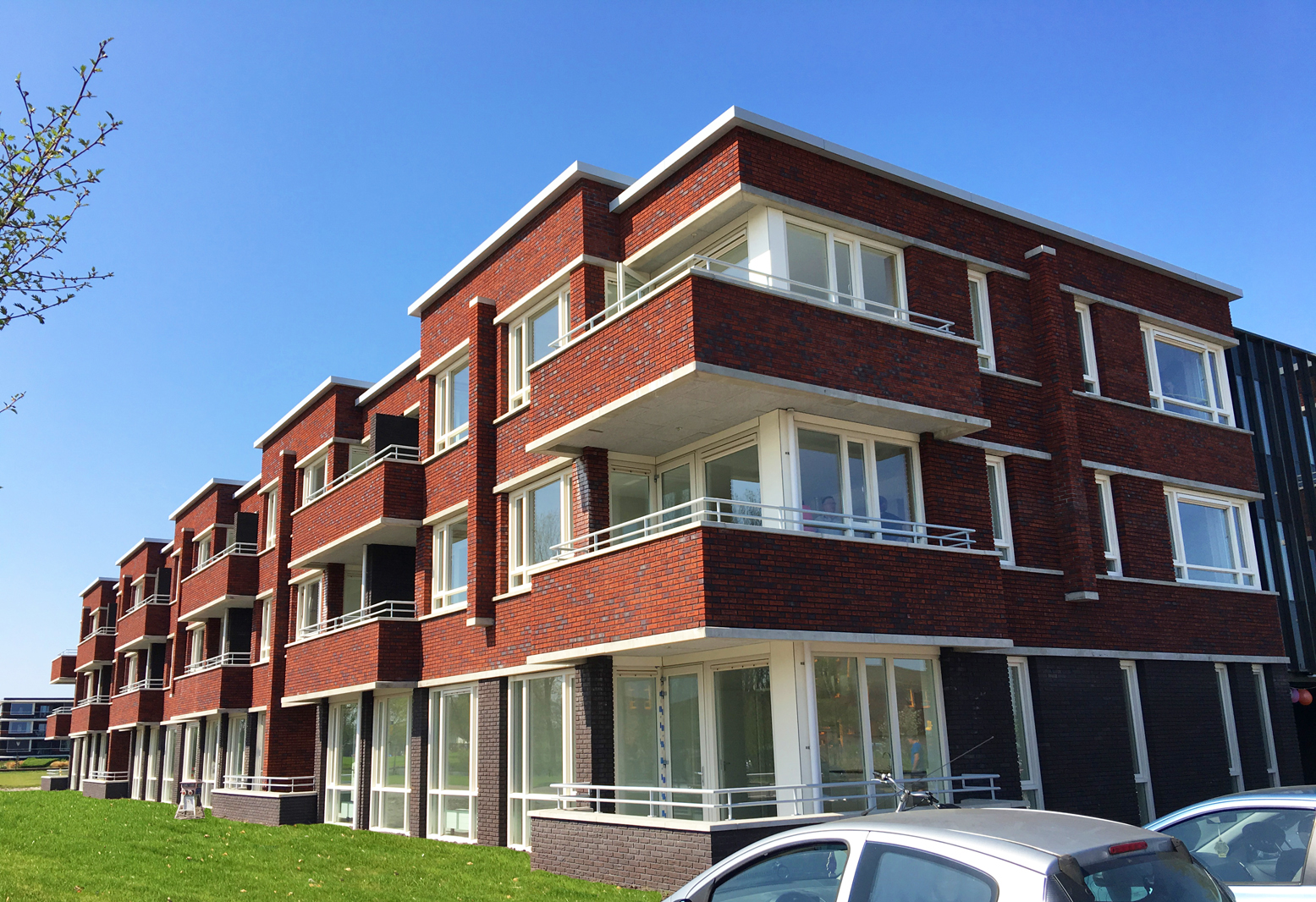 Zowel de grondgebonden woningen als het appartementengebouw zijn ontworpen in een voor deze wijk kenmerkende jaren ‘30 stijl met veel aandacht voor detail.