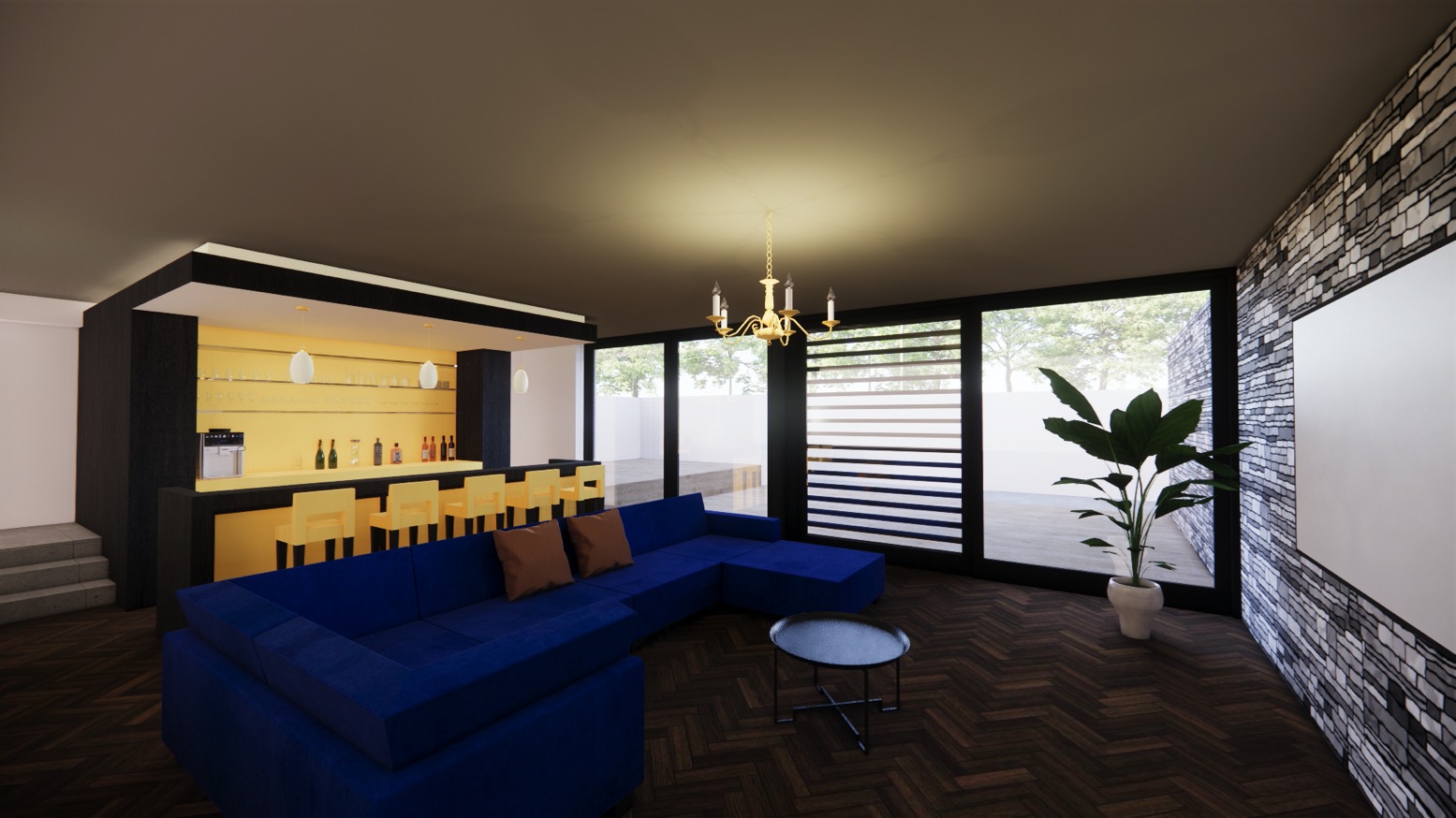 Aan de achterzijde is de kelder toegankelijk gemaakt vanuit de tuin. Een grote glazen pui met toegang tot een patio en het zwembad in de tuin maakt van deze kelder een geborgen, maar ook heerlijk lichte en van alle gemakken voorziene verdieping voor ontspanning, die tevens dienst kan doen als gastenverblijf.